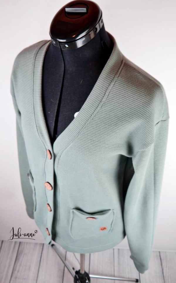 Strickjacke /-mantel Waffelstrick Dunkelmint