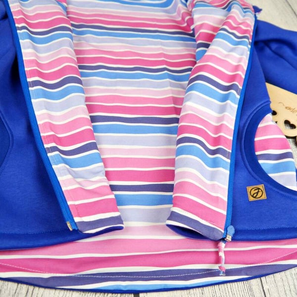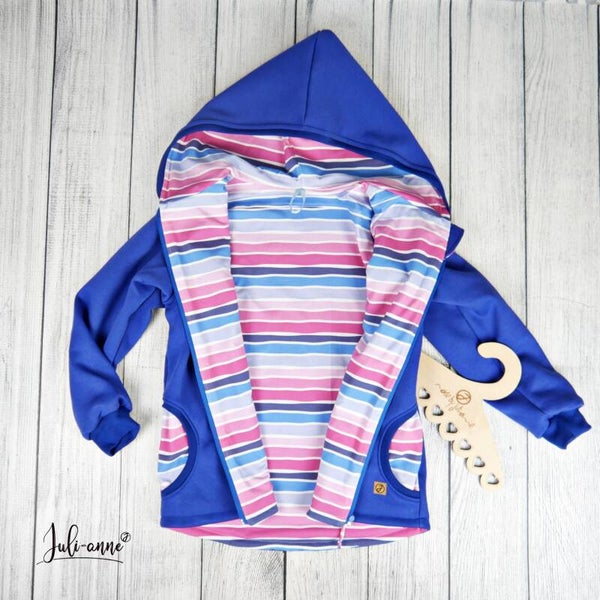 Diese Jacke besteht Außen aus einem sehr weichen Bio Softsweat und ist mit einem Jersey gefüttert.