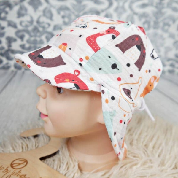 Die großen Schilder an Stirn und Nacken schützen dein Kind bestens vor der Sonne.