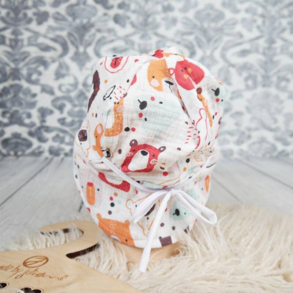 Dank der praktischen Bänder am Hinterkopf, wächst die Mütze gut mit und rutscht nicht ständig vom Kopf.