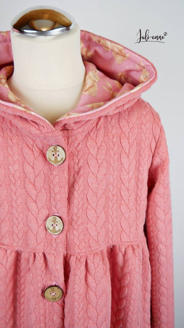 Dies ist der mit Abstand der beliebteste Schnitt für Mädchen.Jacken. Jumi ist ein süßes Jäckchen, dass ich hier aus einem Zopfstrick fertige.