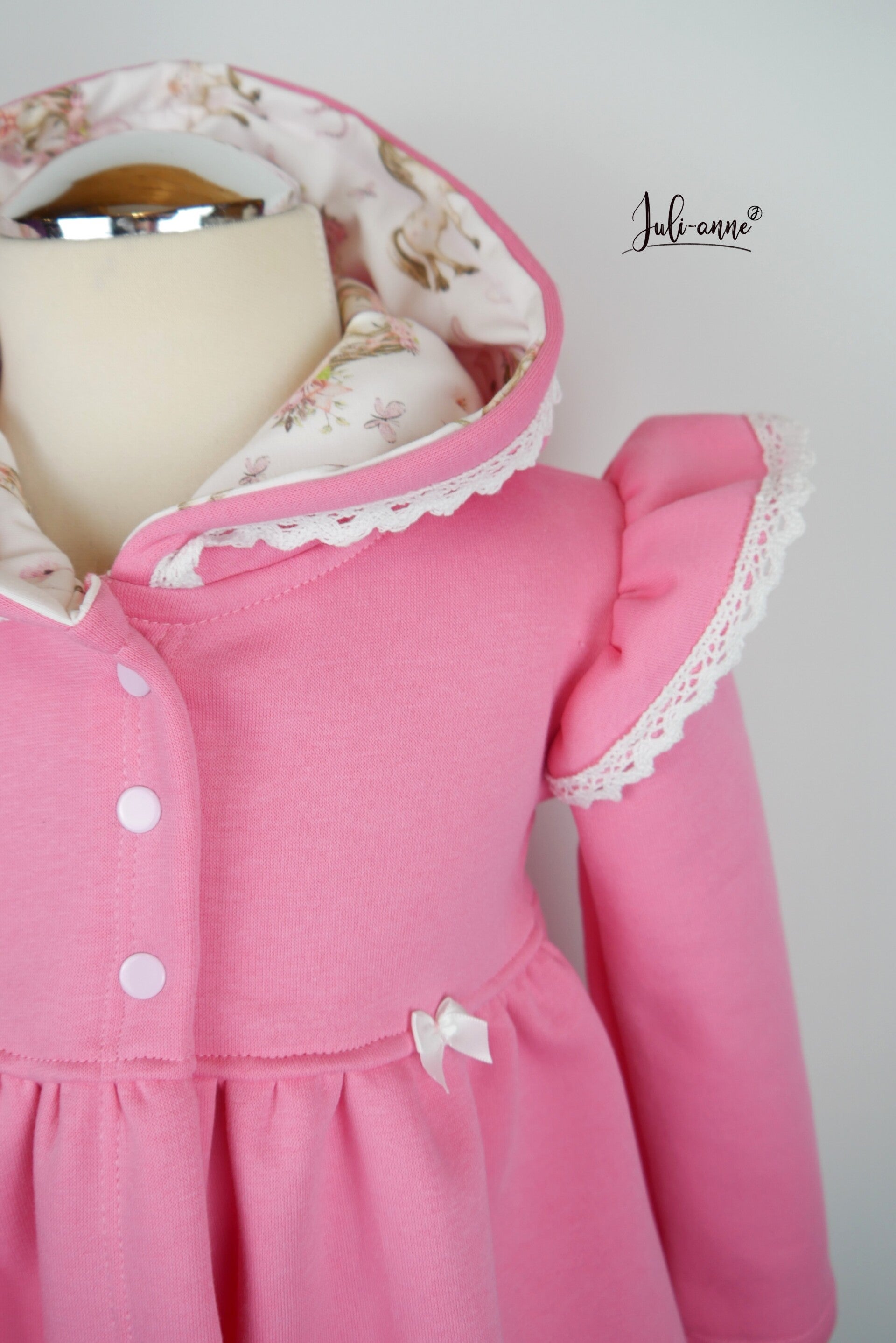 Dies ist der mit Abstand der beliebteste Schnitt für Mädchen.Jacken. Jumi ist ein süßes Jäckchen, dass ich hier aus einem Wintersweat mit viel Tüddel und Spitze anfertige.😉