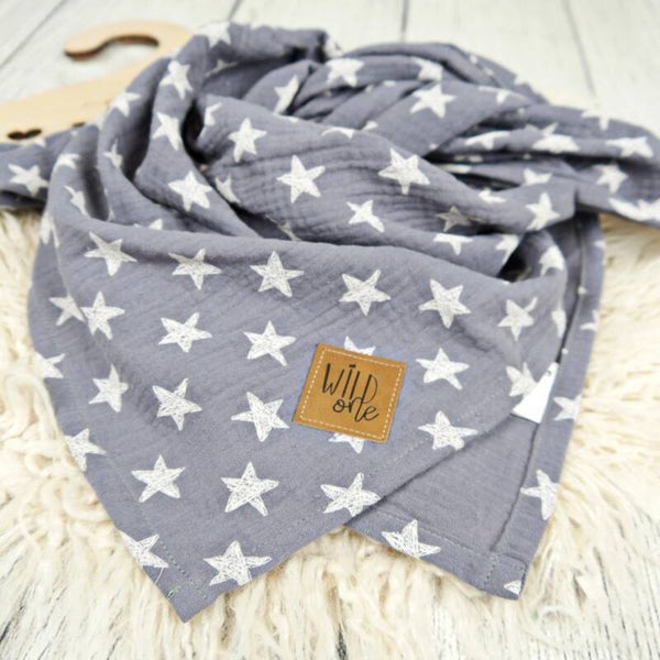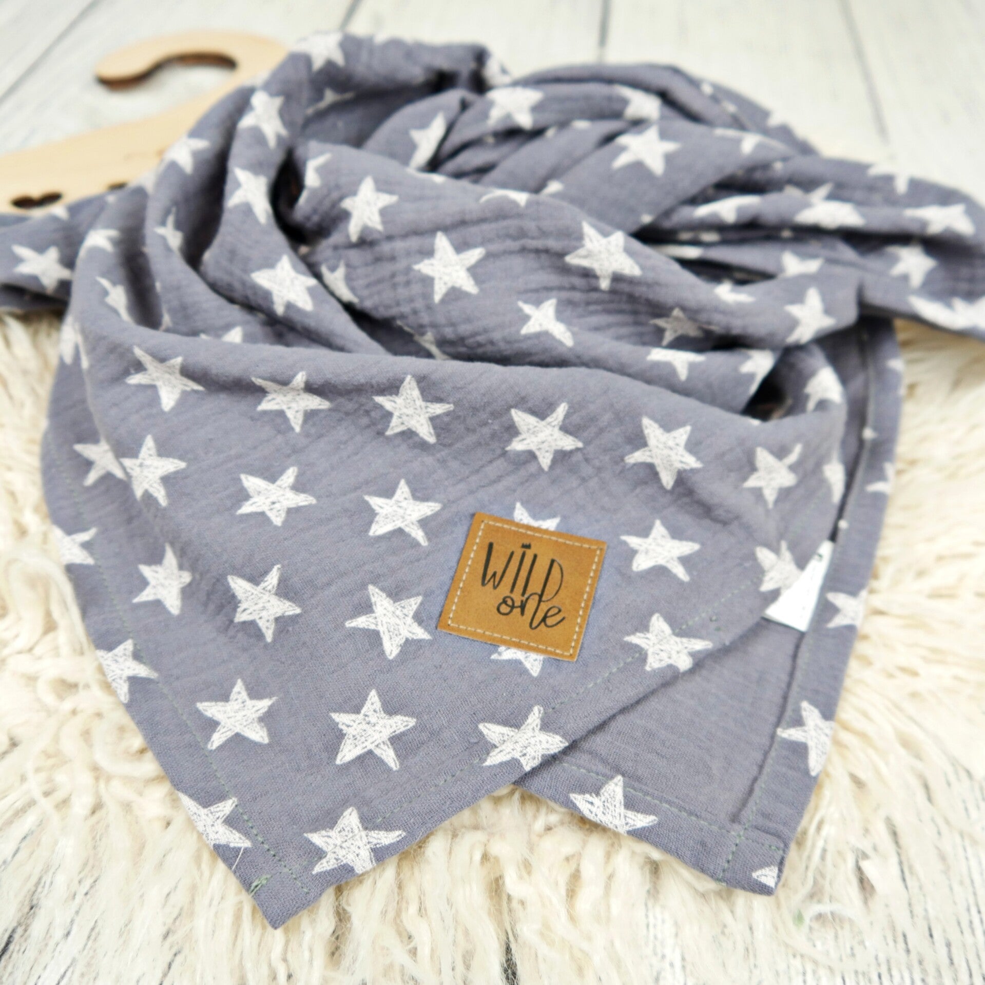 4 - 10 Jahre Musselin Halstuch Sterne Grau "Wild One"