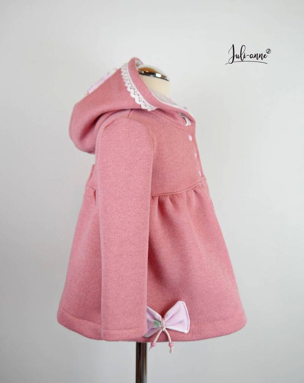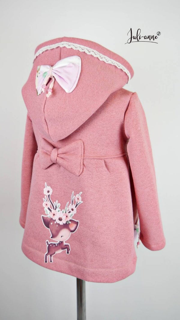 Hier bekommt ihr ein leichtes Jäckchen, dass aus einem Sweat mit Glitzerpartikeln genäht ist. Es ist für den Übergang und Sommer geeignet. Auf den Rücken befindet sich ein Bügelbild aus meiner EIGENPRODUKTION.
