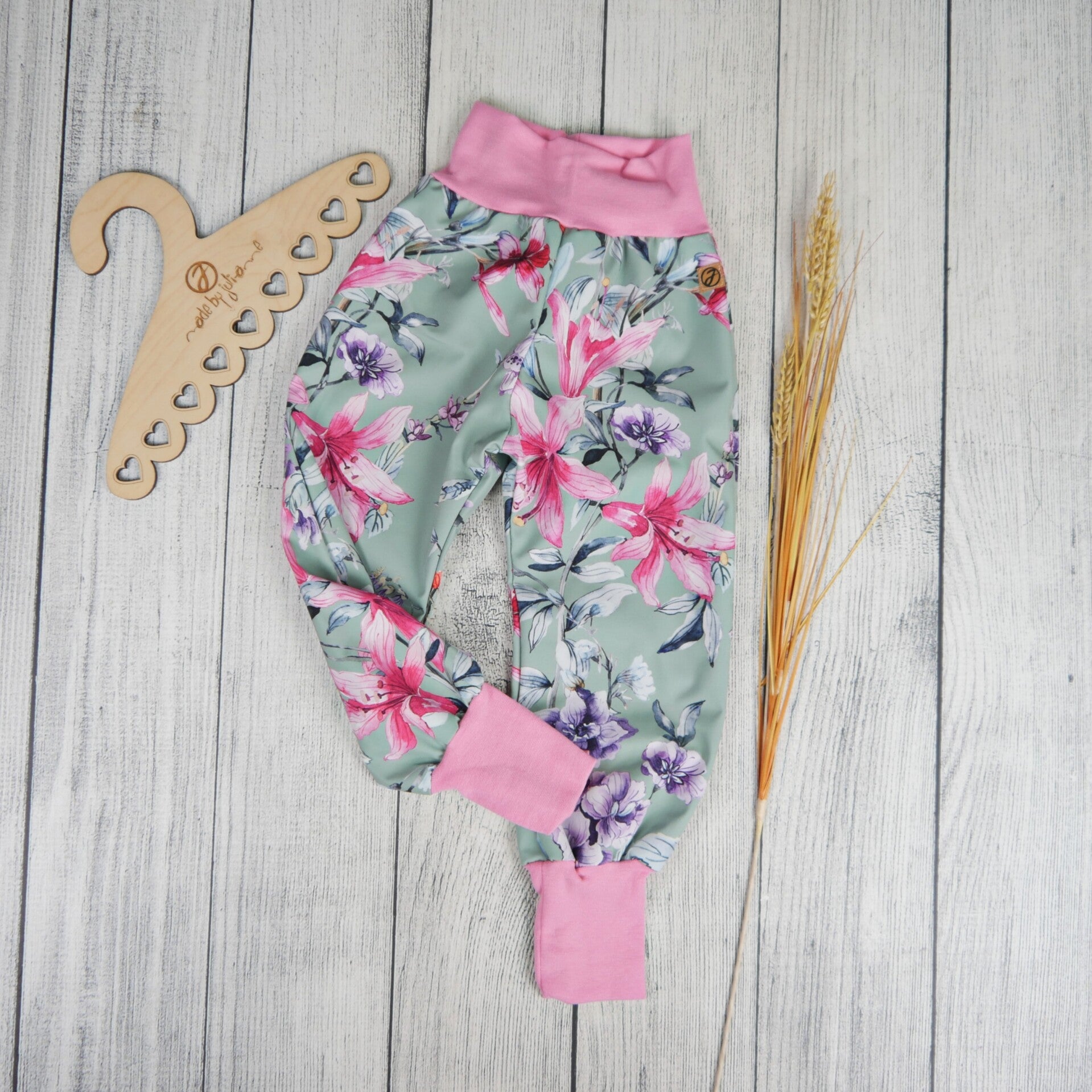 Matschhose Softshell Lilien auf Dunkelmint