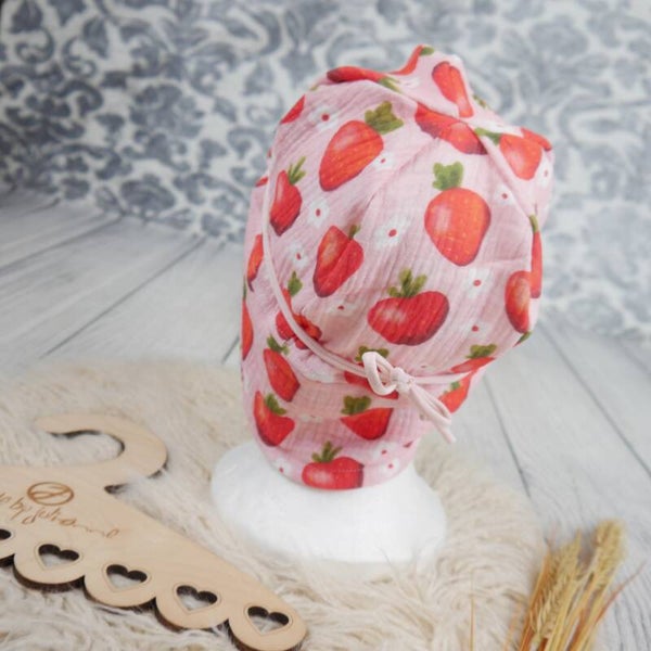 KU 49-52 Sommermütze ONNI Musselin Erdbeeren