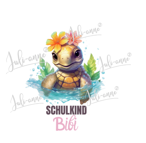 Bügelbild SCHULKIND Schildkröte Blümchen