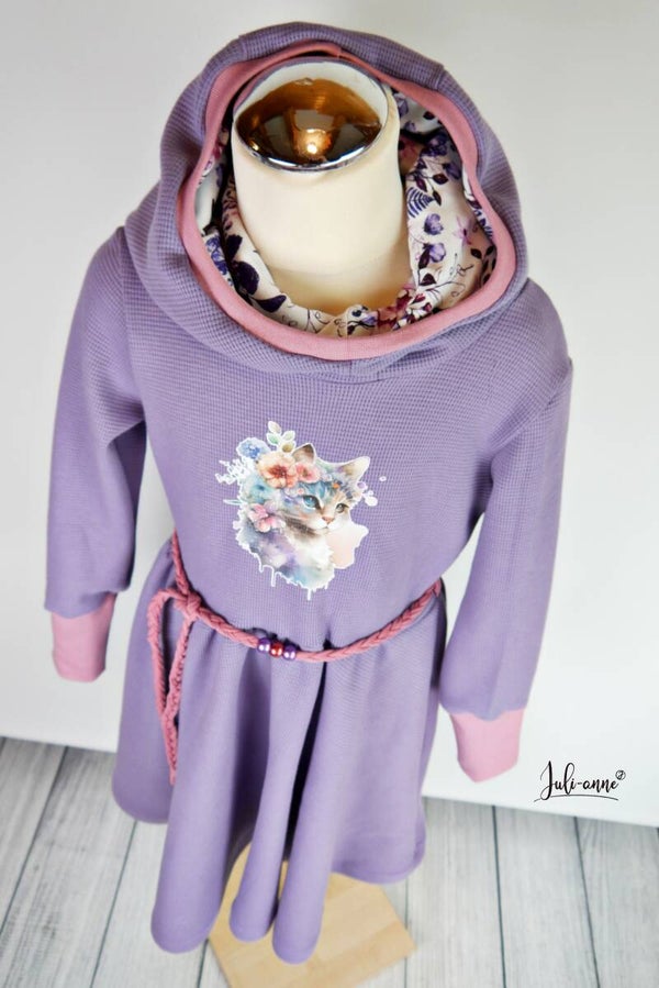Kuschelkleid Drehrock Waffelstrick Flieder & Katze