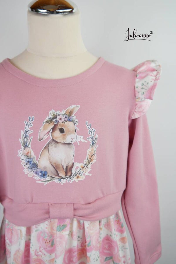 Bügelbild Hase Blumenkranz