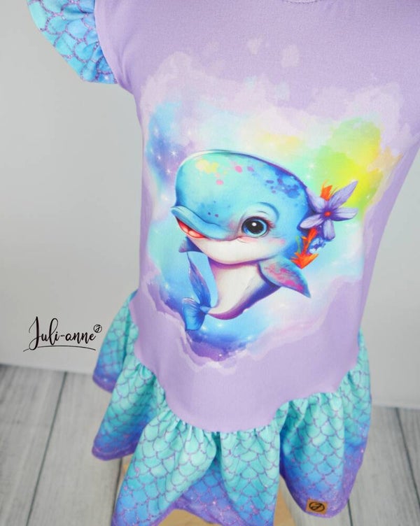 Hier bekommt ihr eine süße Tunika mit angesetztem Volant-Röckchen. Sie geht bis kurz unter dem Po.
