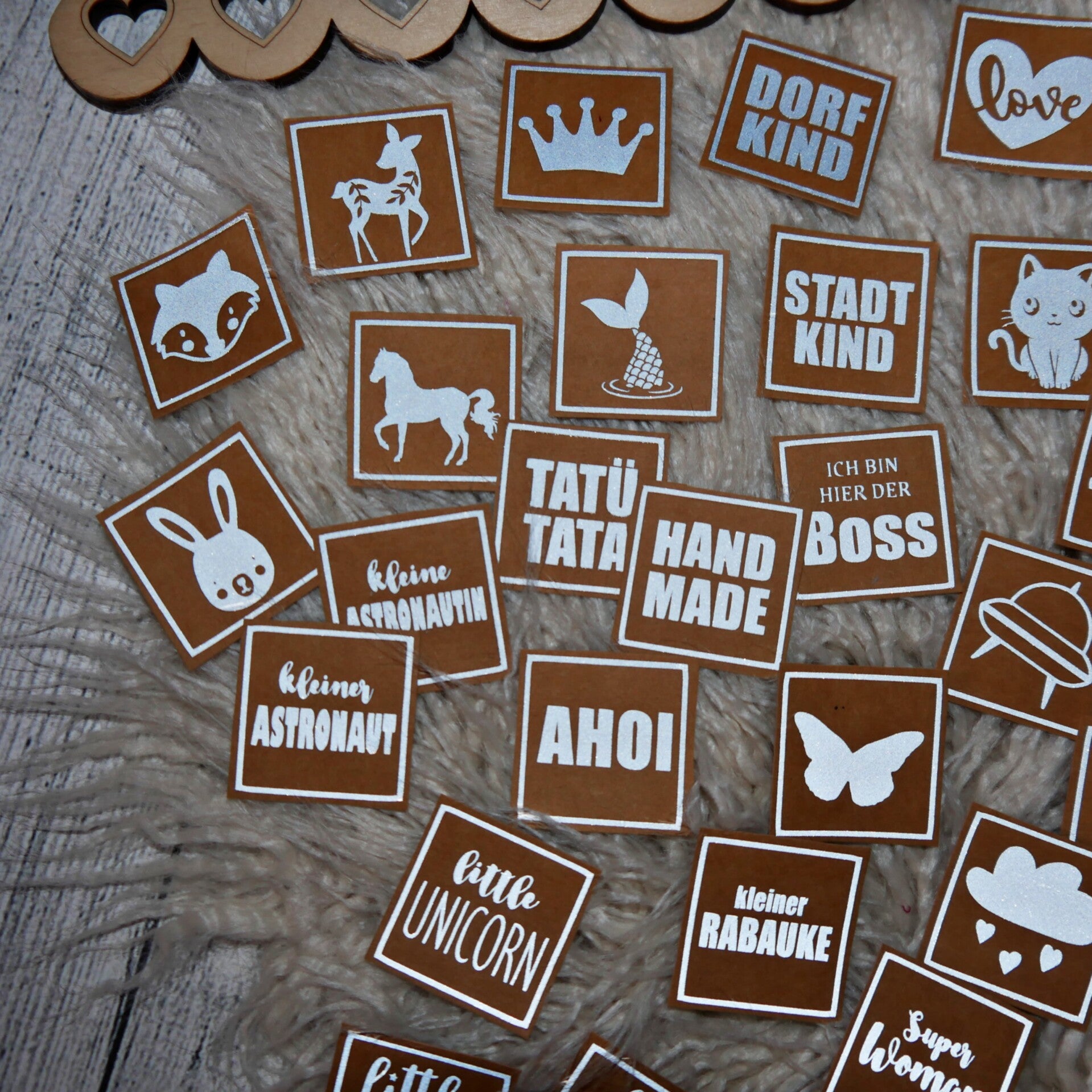 Der Clou: Dank eines Klettpatch ist das Label an der Stirn austauschbar! Bei den Labels handelt es sich um meine Eigenproduktion reflefltierender Labels. Sie leuchten ganz toll im Dunklen ❣️