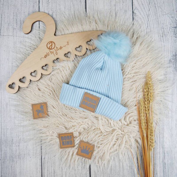 KU 45-48 Hipster Beanie Grobstrick Hellblau - Klett Wunschlabel