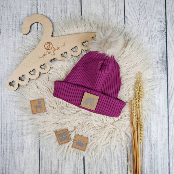 KU 45-48 Hipster Beanie Grobstrick Fuchsia - Klett Wunschlabel