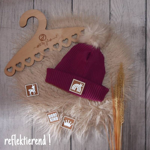 Du kannst bei dieser Beanie 1 Klettlabel Motiv auswählen. Die Motivauswahl findest du bei den weiteren Bildern.