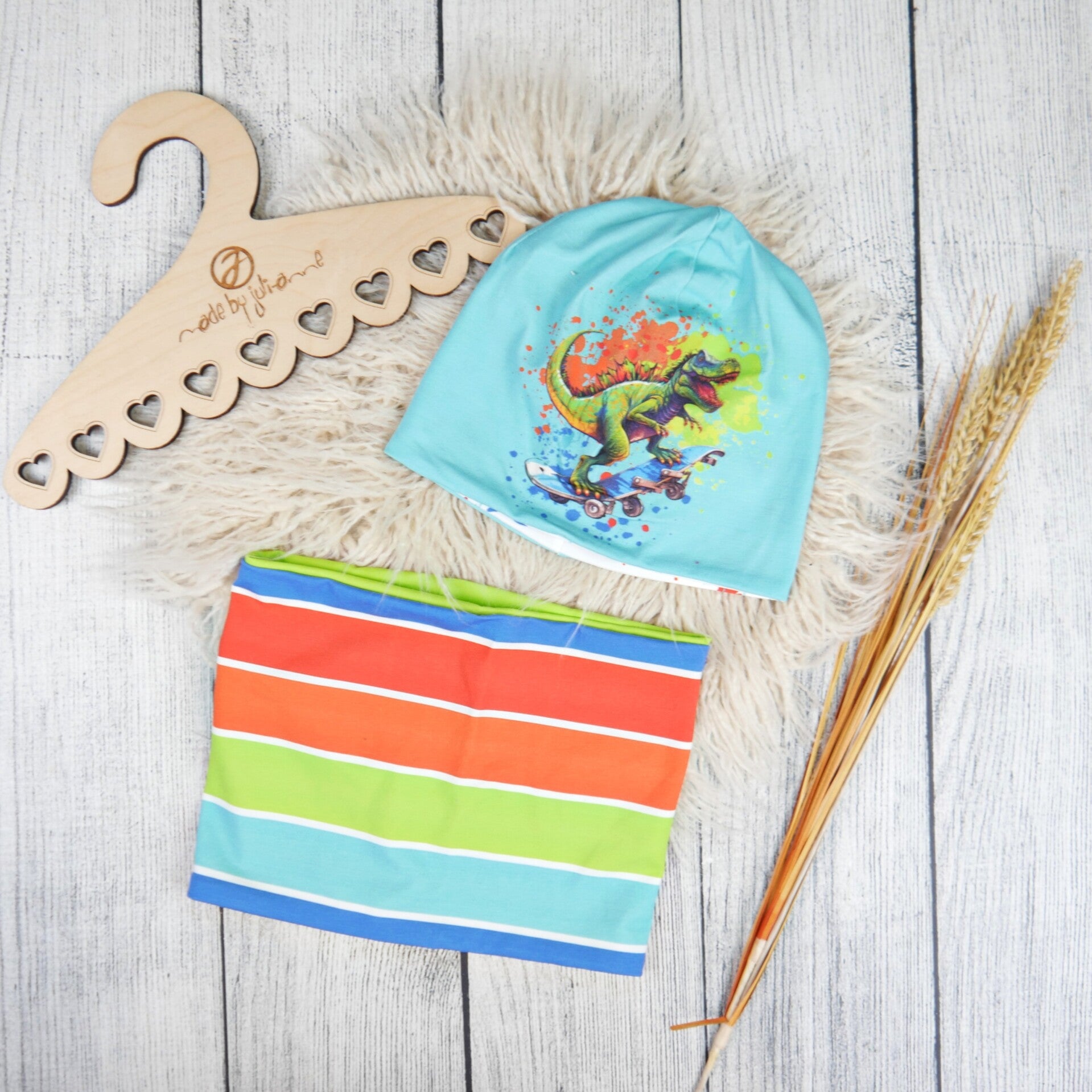 Set: Beanie & Schlupfschal Skater Dino T Rex
