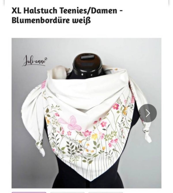 Damen XL Halstuch Blumenbordüre Weiß = 35,90€
