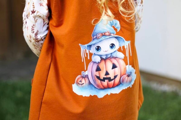 Bügelbild süßer Geist mit Kürbis #Halloween