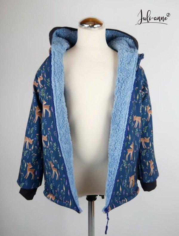 Ihr könnt auswählen, wie dick eure Jacke sein soll. Wenn ich sie mit einem Jersey füttere, dann ist sie für kalte Sommertage und die Übergangszeit geeignet. Mit einem Baumwollfleece oder sogar Baumwollteddy wird sie wärmer und während der Übergangszeit - Winter tragbar.