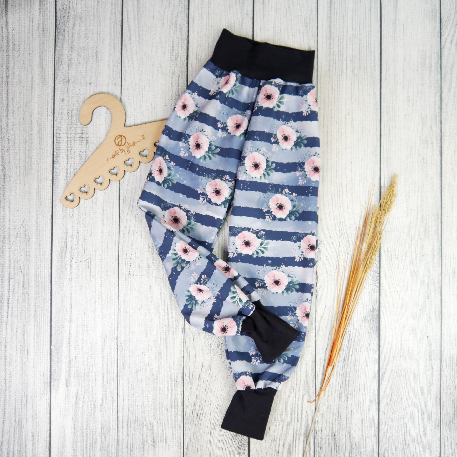 122/128 Matschhose Softshell Blumen & Streifen Rosa Grau