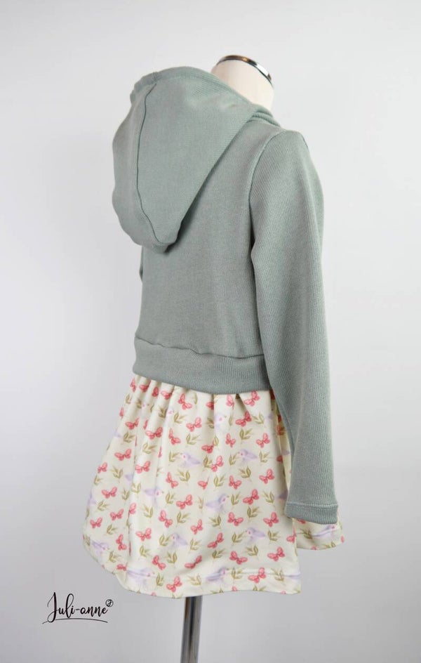 Girly Sweater - Tunika mit/ohne Kapuze Strick Dunkelmint ~ Vögelchen