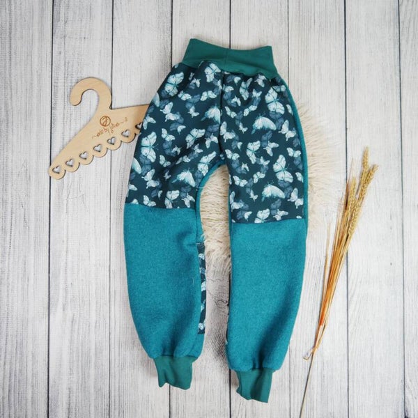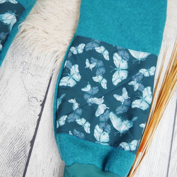 Bei dieser Hose sind die beliebtesten Outdoor-Stoffe miteinander kombiniert ☺️Die Hose aus Wollwalk hat an Po und Knie praktische Verstärkungen aus Softshell. Danit ist sie besonders unempfindlich, wenn dein Kind auf feuchten Boden sitzt und spielt
