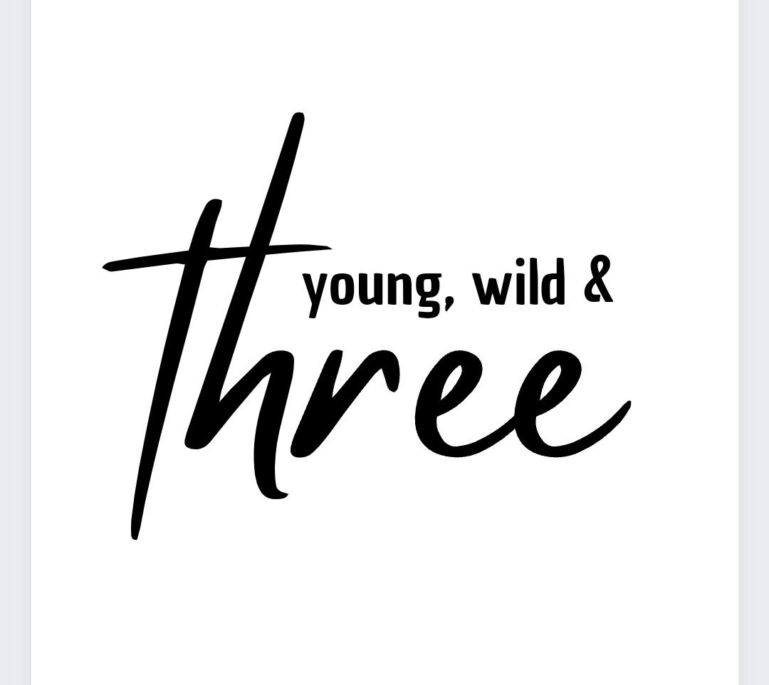 Bügelbild YOUNG, WILD & THREE aus Glitzerfolie Rosa Gr. M = 6,49€