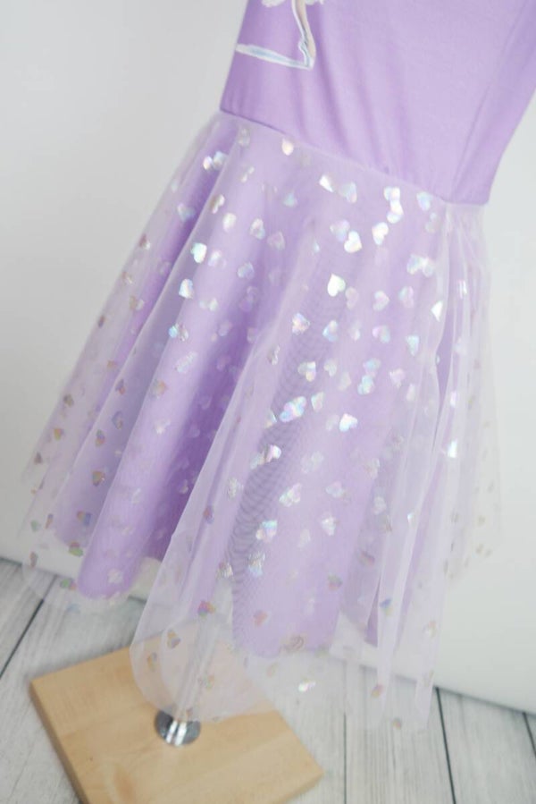 Drehkleid - Ballerina mit Herzchen Tüll Flieder Lila