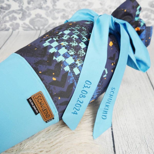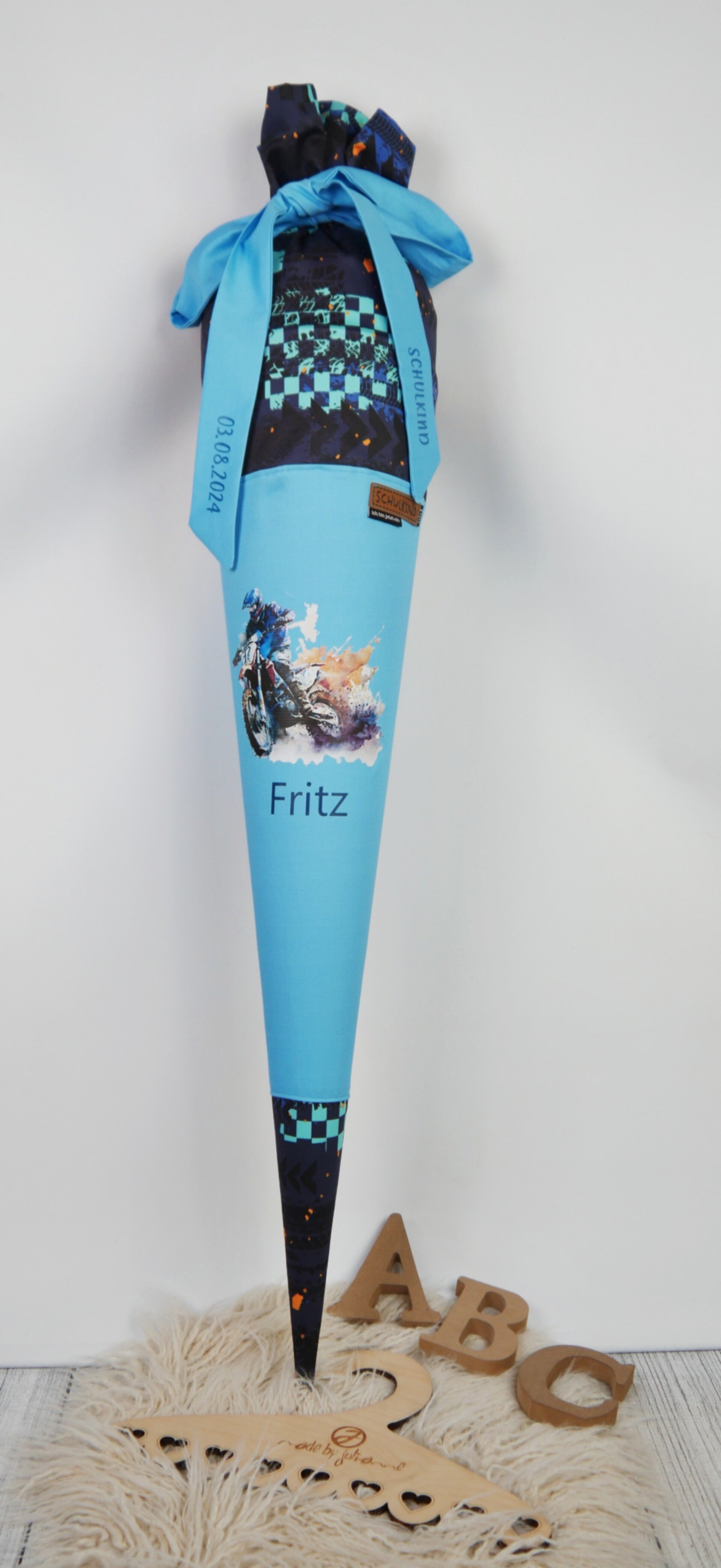 Schultüte aus Baumwolle mit verschiedenen dekorativen Details. Der Motocrosser ist ein Bügelbild ❣️