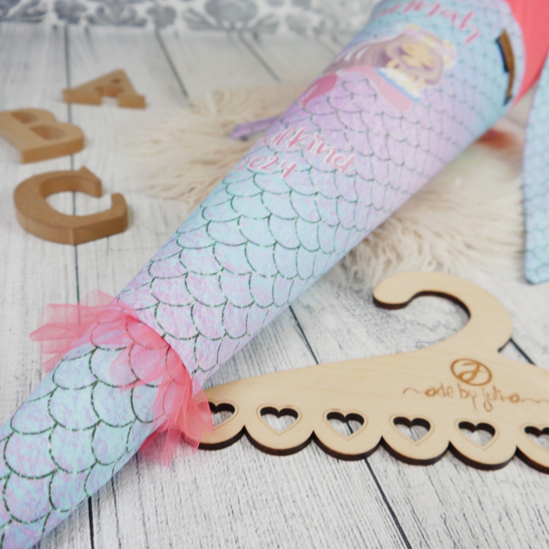 Schultüte Meerjungfrau Schuppen Koralle Tüll 70cm / 85cm