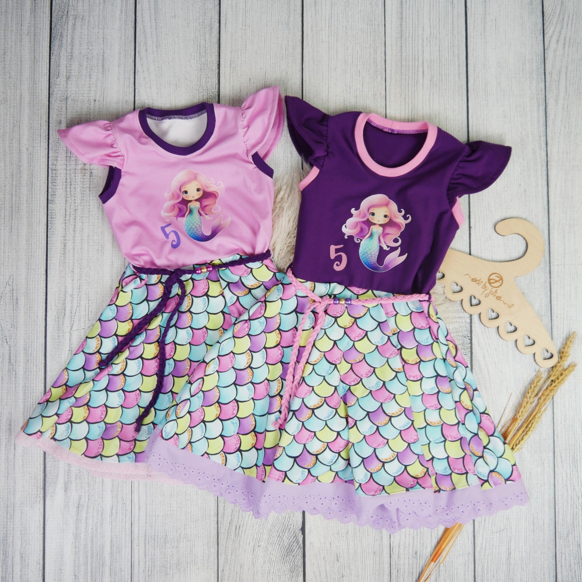 Drehkleid Geburtstag Meerjungfrau Rosa *Wunschzahl & Name