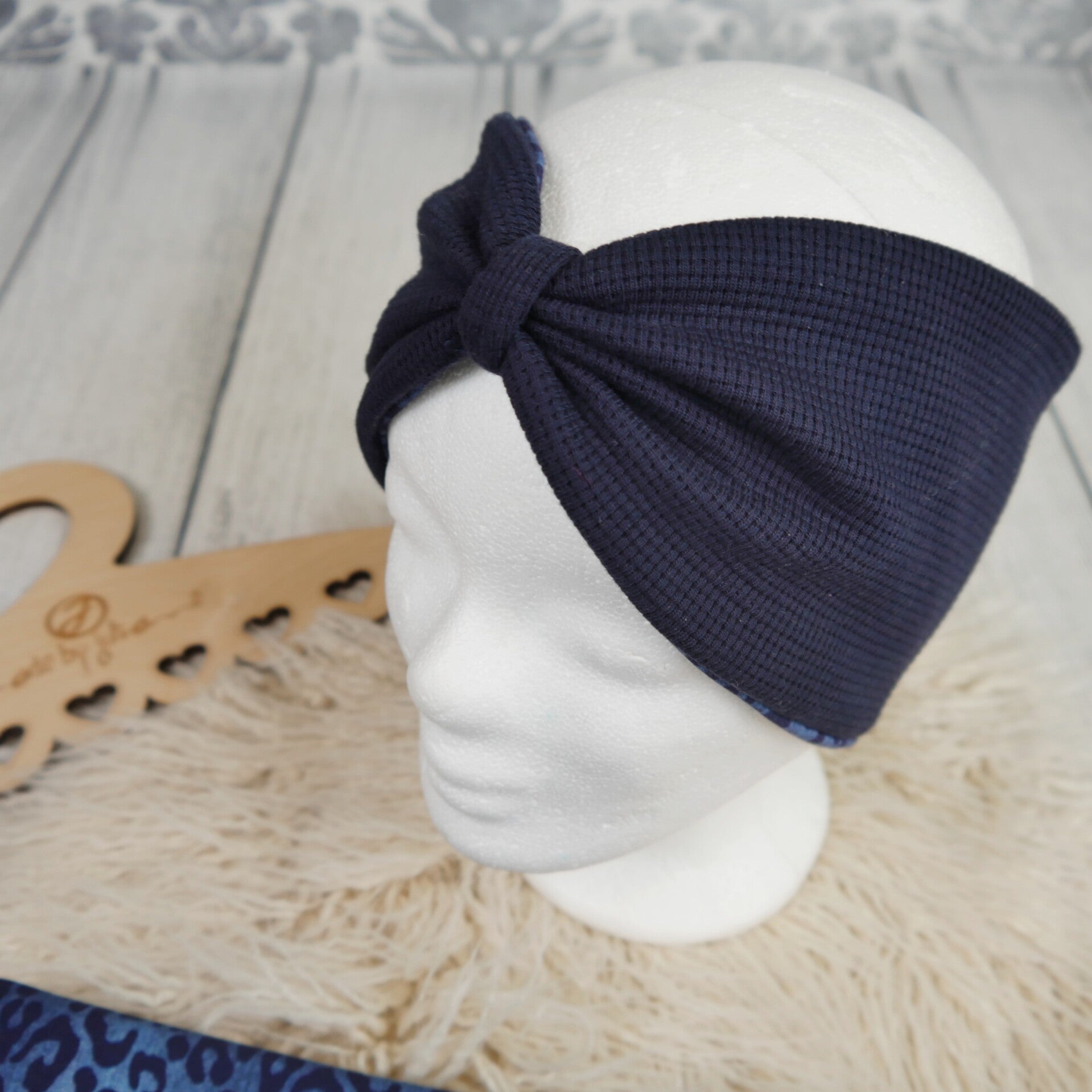 KU 54-57 Set: Knoten-Stirnband & Schlupfschal Waffelstrick Dunkelblau