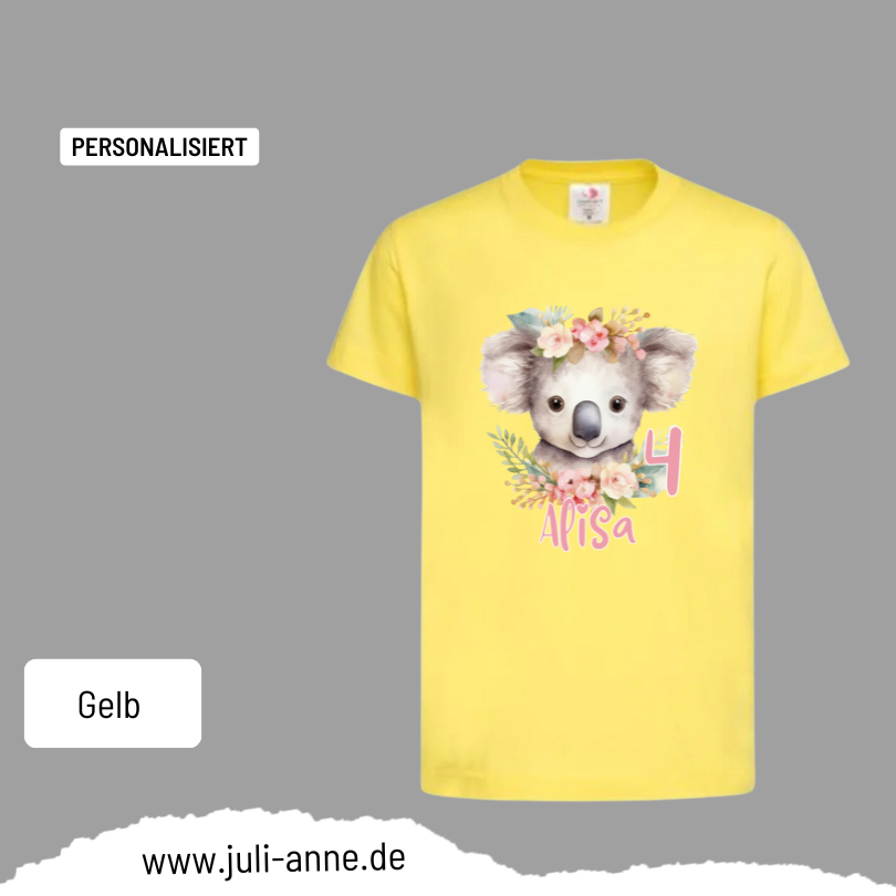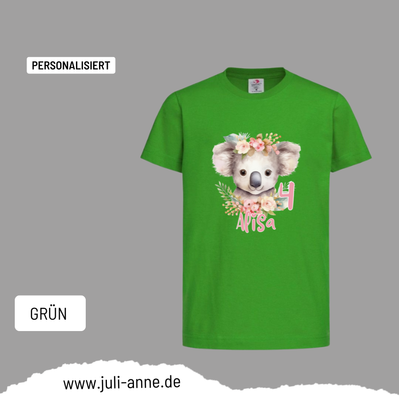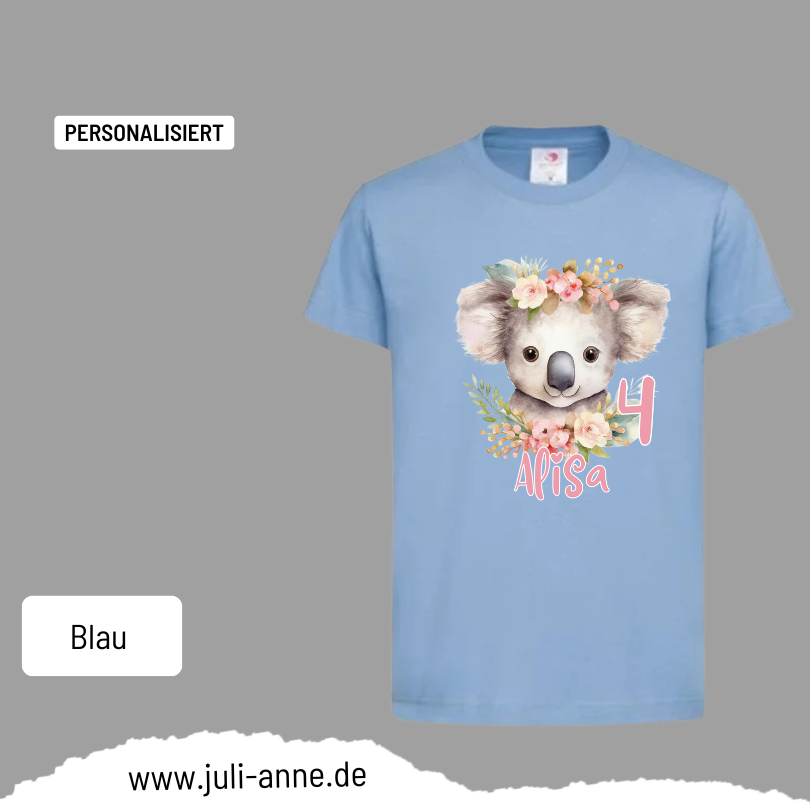 Kinder Basic-Shirt GEBURTSTAG personalisiert Zahl & Name Wild ANIMALS - Koala