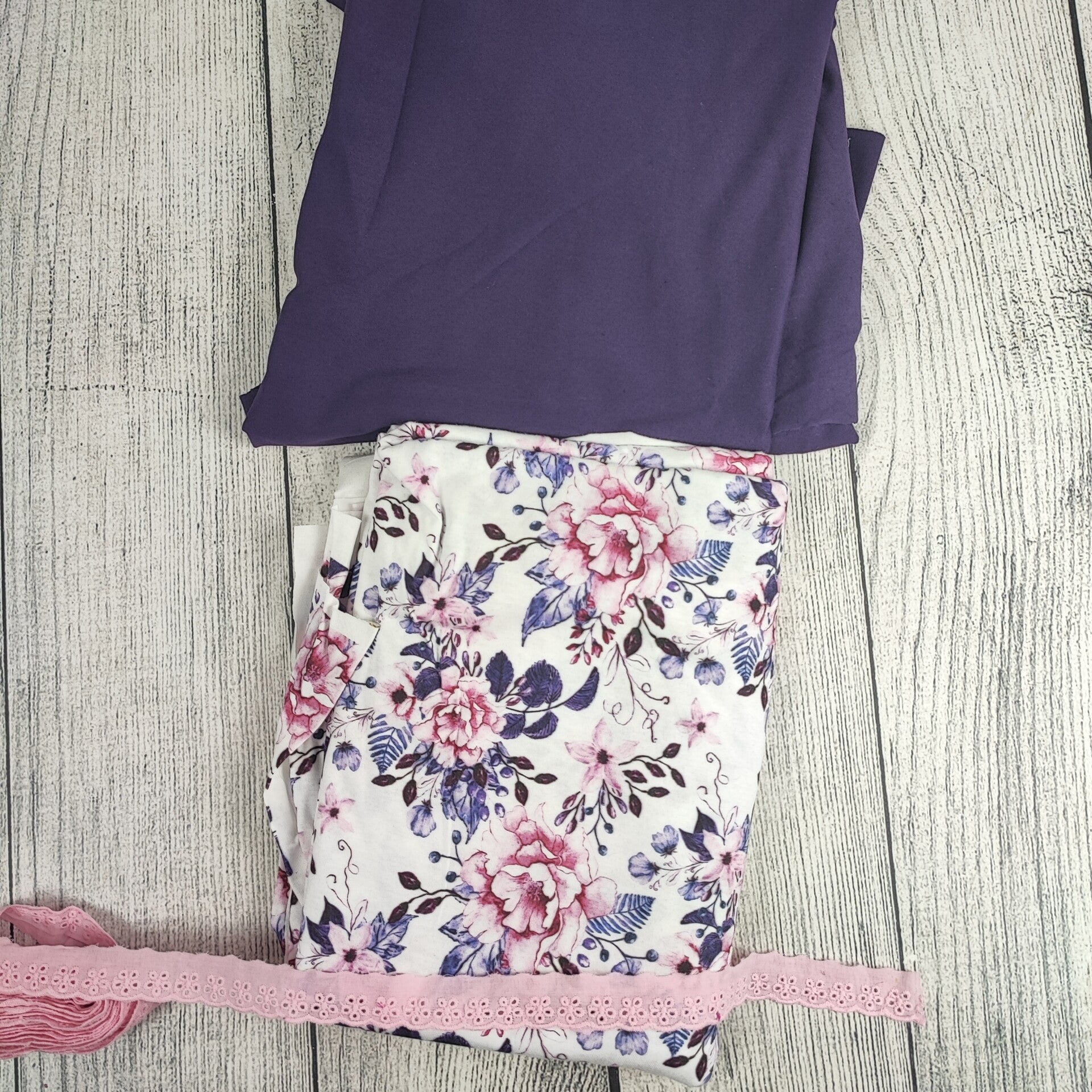 Unten Blumen Lila/Rosa auf Weiß