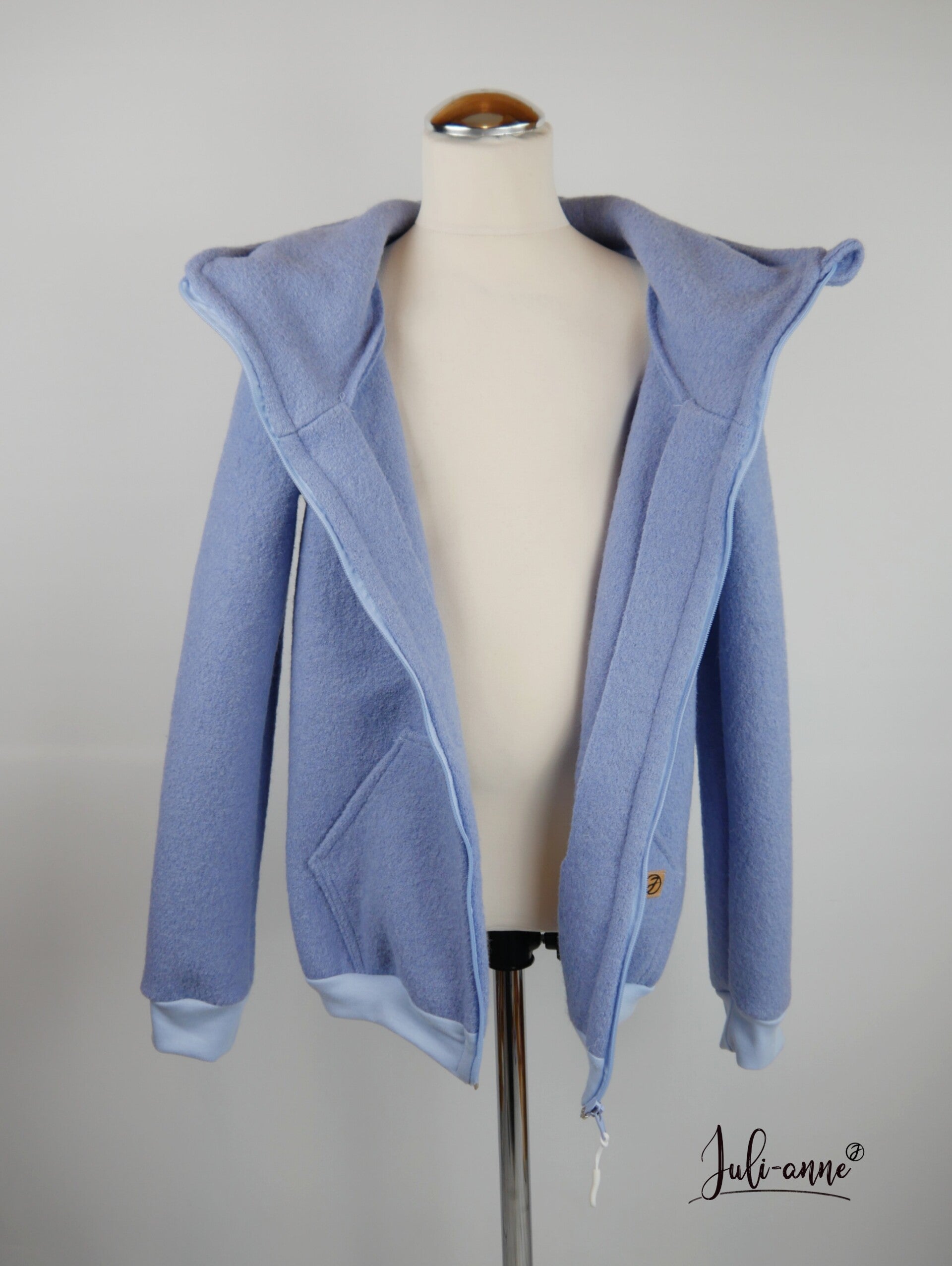 Zippi ist eine einlagige Reißverschluss-Jacke mit Kangerutasche, die ich hier aus Standardwalk fertige.