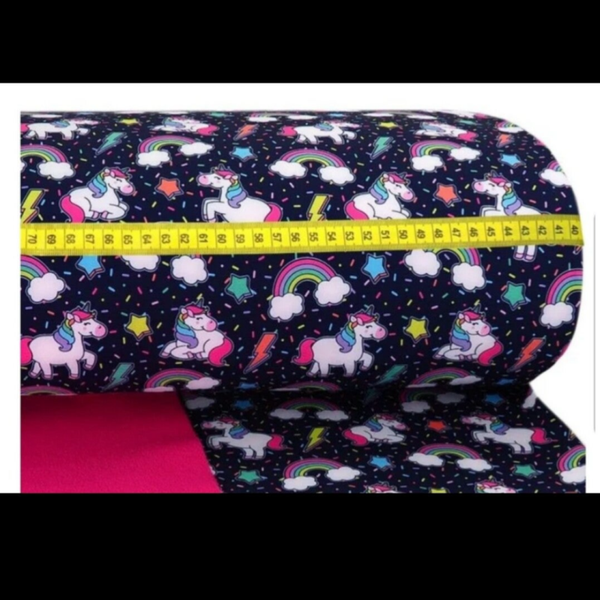 Softshell Einhörner & Regenbogen auf Dunkelblau