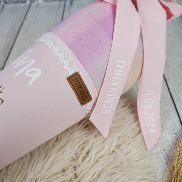 Schultüte Reh Rosa mit bunten Tüll 70cm / 85cm / Gechwister