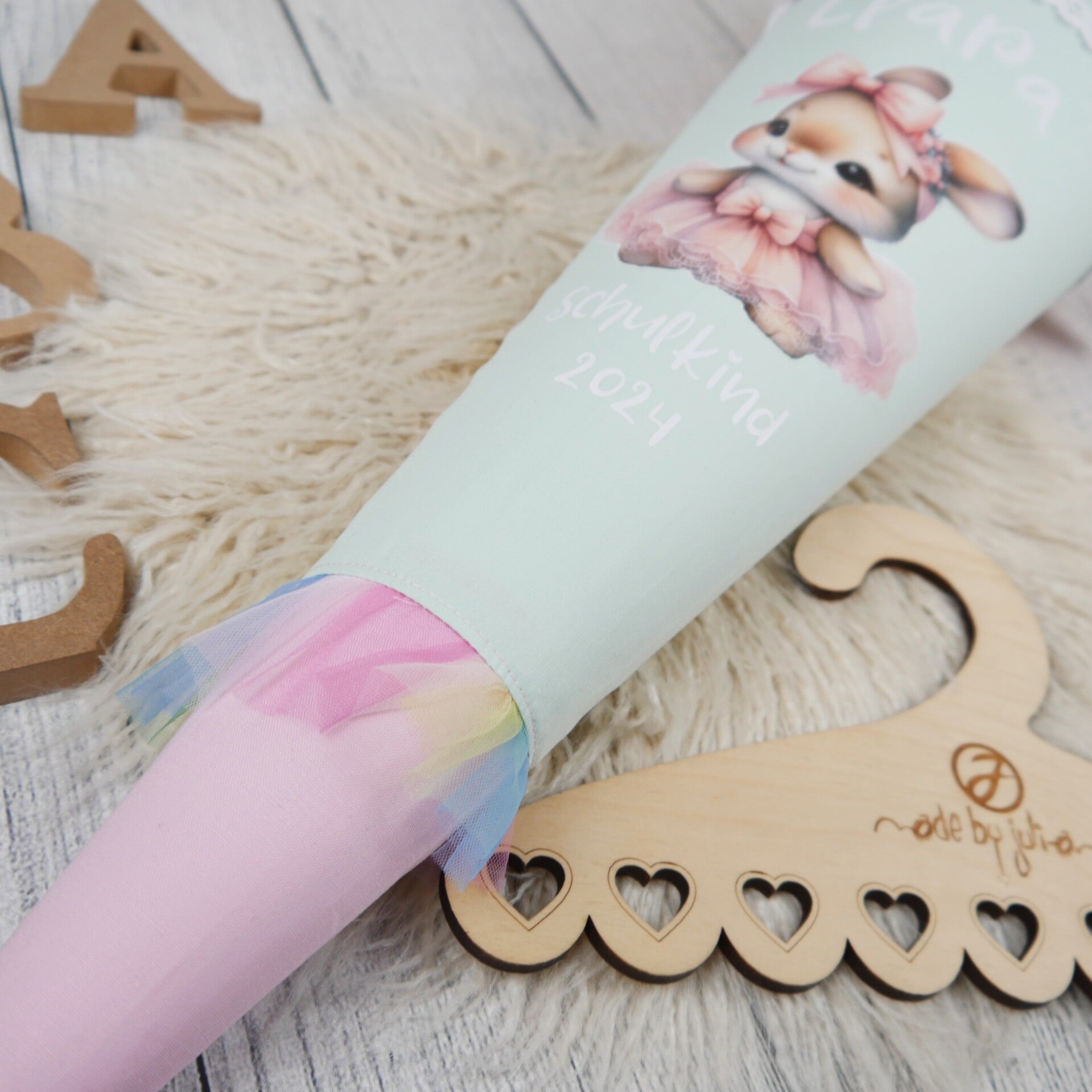 Schultüte Ballerina Hase Mint Rosa mit Tüll 70cm / 85cm / Geschwister