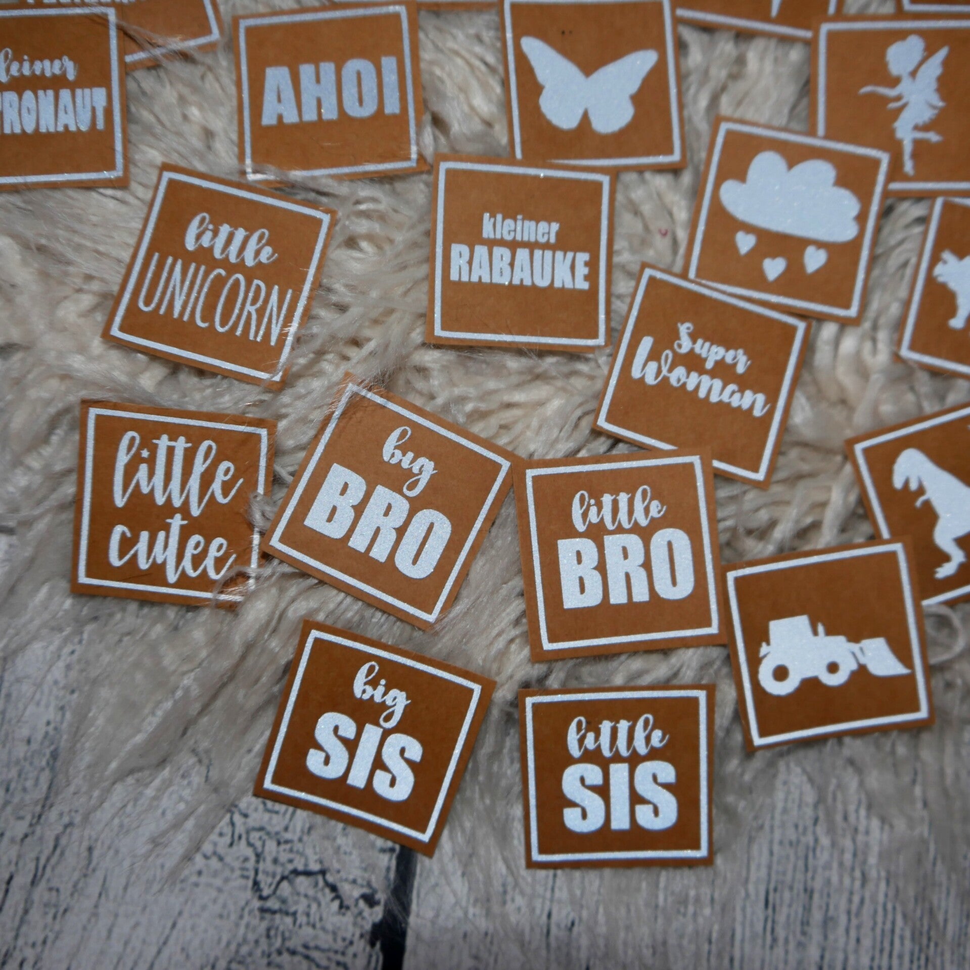 Der Clou: Dank eines Klettpatch ist das Label an der Stirn austauschbar! Bei den Labels handelt es sich um meine Eigenproduktion reflefltierender Labels. Sie leuchten ganz toll im Dunklen ❣️