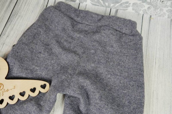 Die Hose hat Taschen und eine dekorative Passe Hinten. Der Bauchbund aus Walk hat einen eingezogenen Gummi.
