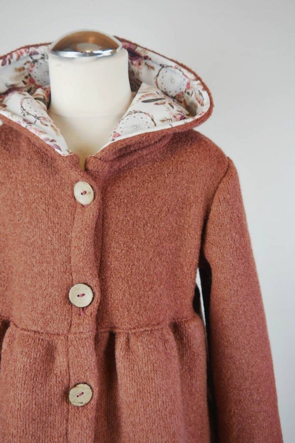 Jumi ist ein süßes Jäckchen, dass ich hier aus Walk fertige. Die Jacke ist einlagig, nur die Kapuze ist gefüttert. Das ist besonders bei der Reinigung praktisch. Ein komplettes Futter aus Jersey ist nicht extra wärmend und außschließlich dekorativ, benötigt jedoch eher mal eine Reinigung.