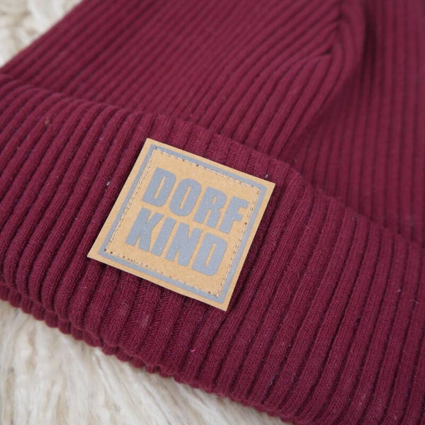 KU 54-59 Hipster Beanie Grobstrick Bordeaux - Klett Wunschlabel