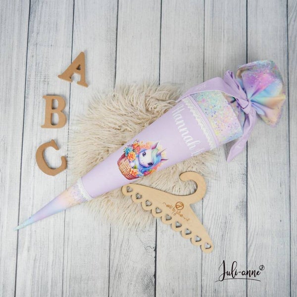 Bügelbild Einhorn Blumenkorb SCHULKIND personalisiert