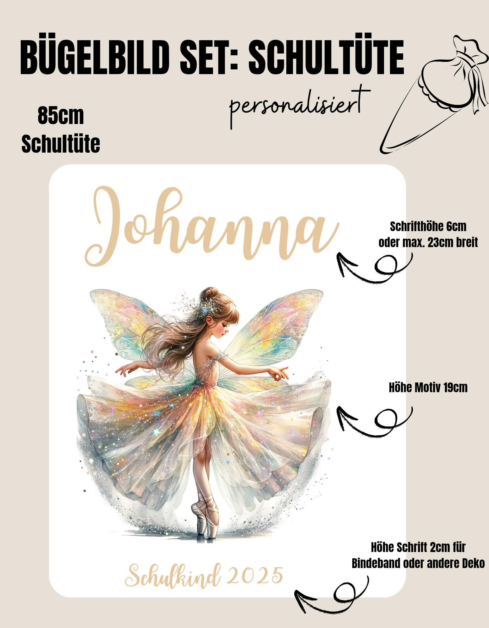 Set für Schultüte *personalisiert* Fairy Ballerina Golden