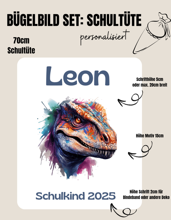 Set für Schultüte *personalisiert* Aquarell Dinosaurier 3
