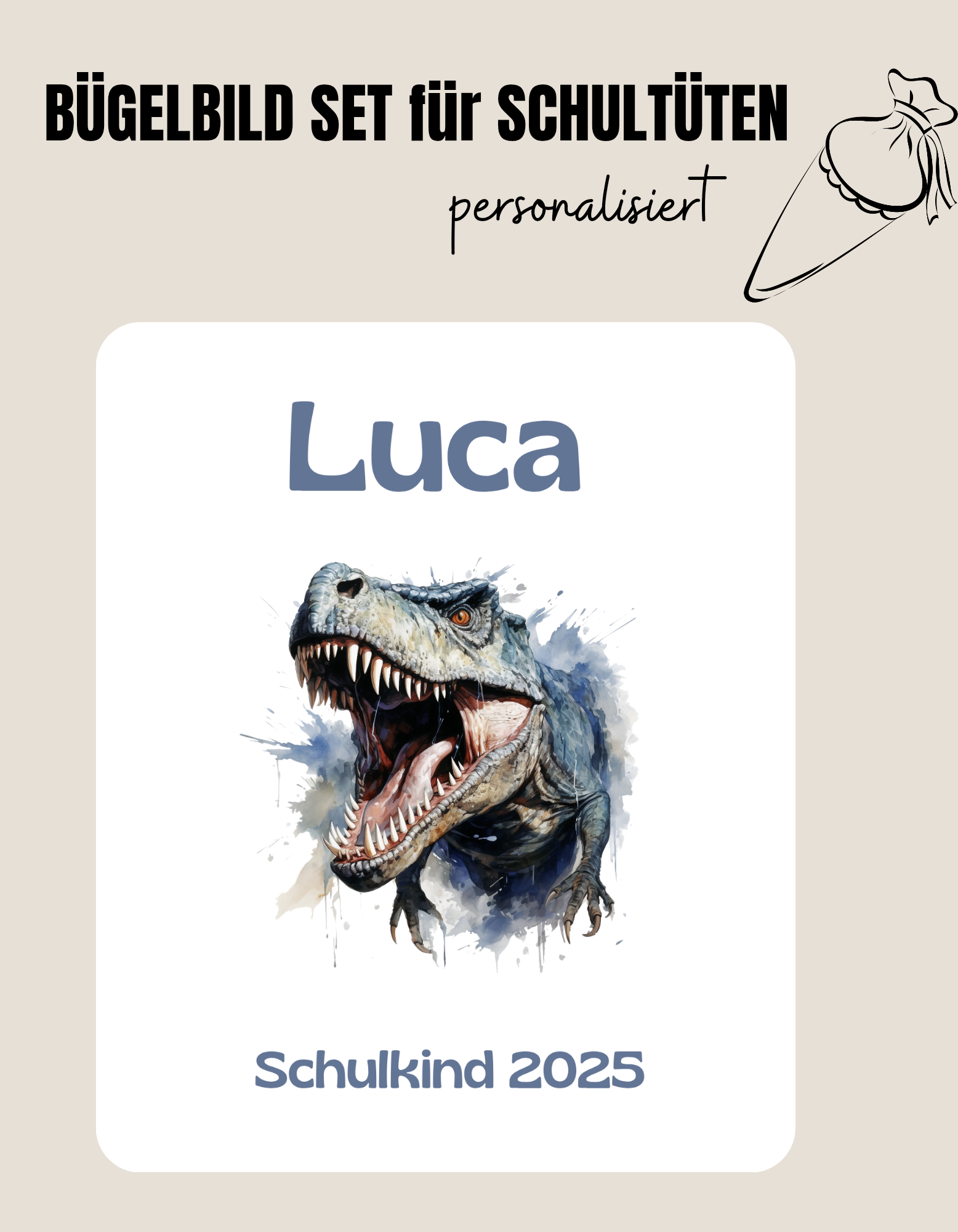 Set für Schultüte *personalisiert* Aquarell Dinosaurier 6