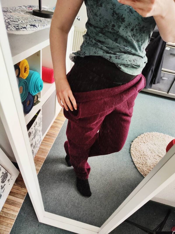 Hier bekommt ihr eine bequeme Walkhose aus dem Standardwalk. Diese ist weit genug geschnitten um die Hose über eine schmale Jeans oder Leggings zu ziehen. Aber dennoch ist sie nicht sackig sondern Figurnah geschnitten.