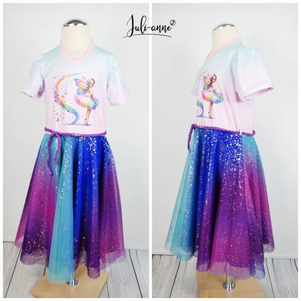 Drehkleid - Fairy Ballerina Schmetterlinge Lila Mint Rosa Tüll Glitzer Regenbogen