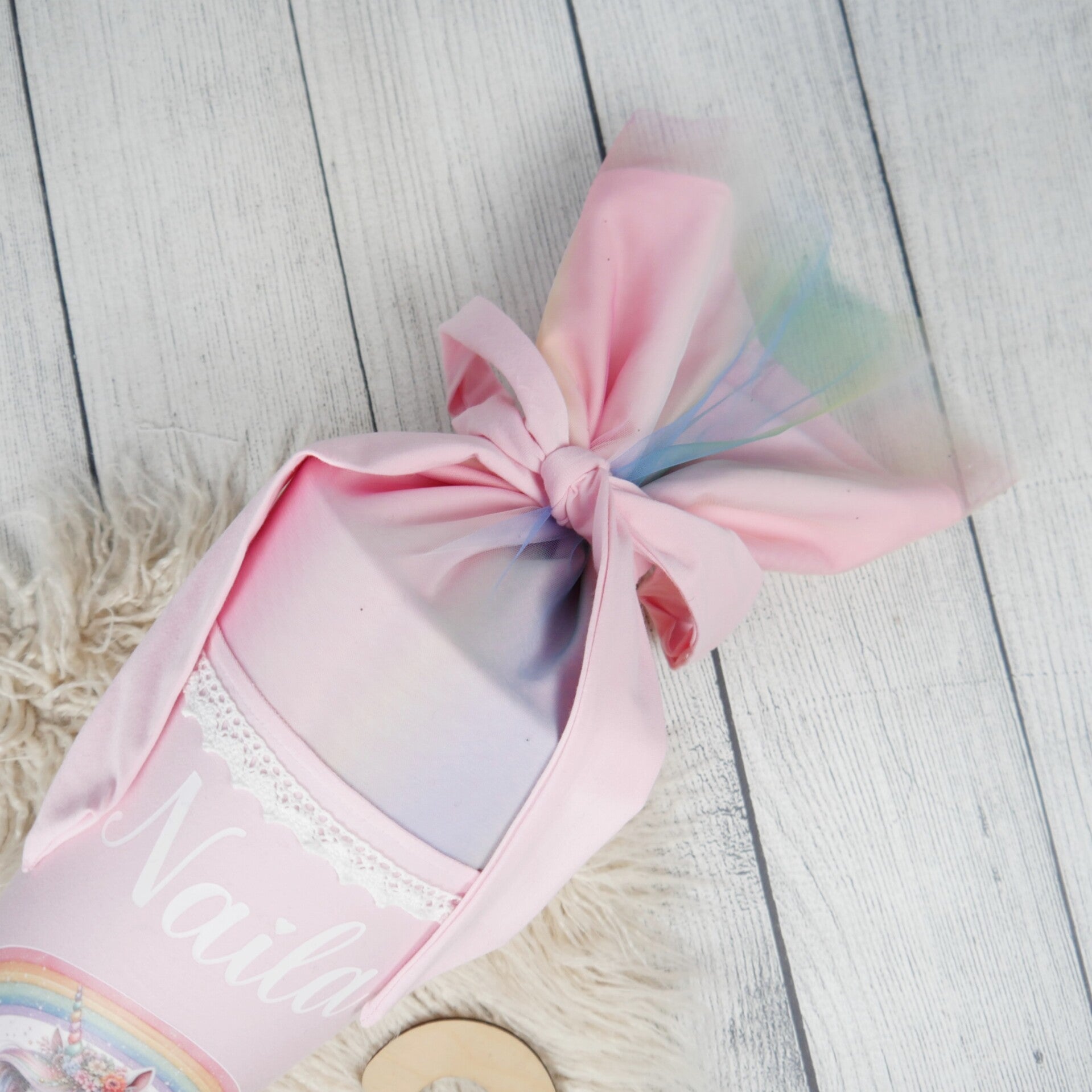 Schultüte Rainbow Unicorn Hellrosa mit Tüll 70cm / 85cm