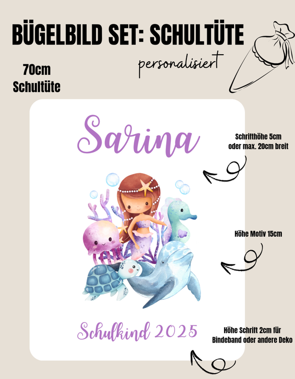 Set für Schultüte *personalisiert* Meerjungfrau & Delfin