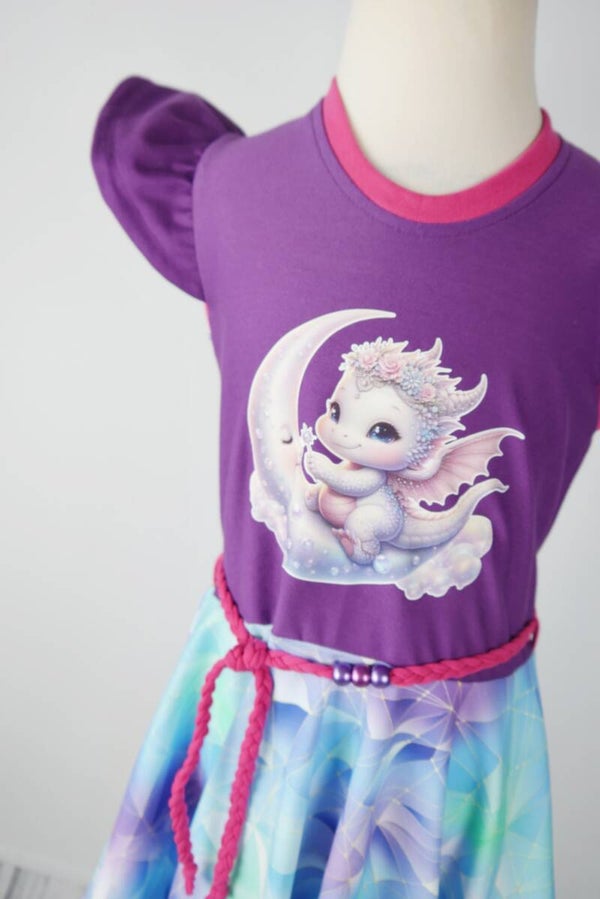 Drehkleid - Monddrache Lila Türkis - #Einschulung